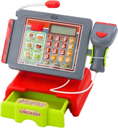 Die Kinderkasse mit Zubehör ist ein tolles Lernspielzeug, das die echte Arbeit im Geschäft naturgetreu nachahmt. Dank Licht- und Soundeffekten, Scanner und Mikrofon ist das Spiel fesselnd und realistisch. Im Set enthalten sind ein Einkaufskorb, Spielgeld (Scheine, Münzen) und Lebensmittel (Obst, Gemüse, Packungen), sodass Kinder sofort mit dem „Verkaufen“ beginnen können.