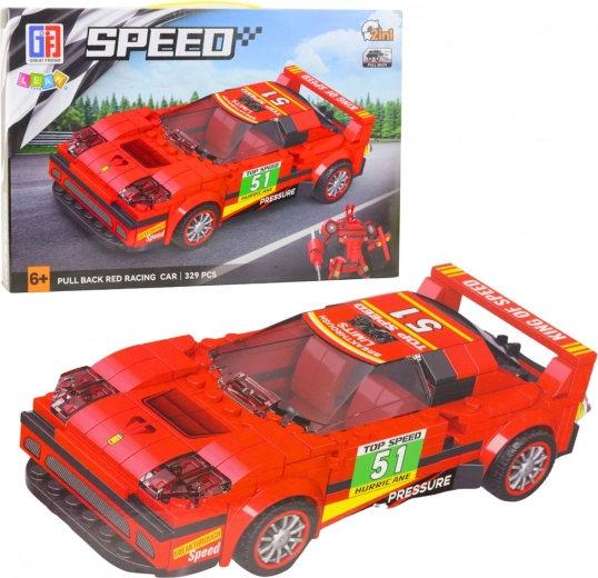 Entdecken Sie einen dynamischen Bausatz, der Geschwindigkeit, Technik und Kreativität verbindet. Dank des 2‑in‑1-Designs können Sie das Modell jederzeit vom Sportwagen zum Roboter umbauen und so das Spielerlebnis verlängern. Der Pull‑Back‑Antrieb sorgt für Extra‑Schub – einfach aufziehen und zusehen, wie das Fahrzeug nach vorne sprintet.