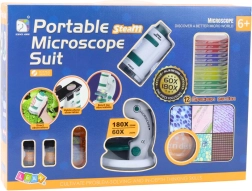 Zum Lieferumfang gehören ein Stativ mit LED, ein Smartphone-Halter für leichtes Fotografieren und Teilen der Entdeckungen sowie reichhaltiges Zubehör für die ersten Versuche im „Labor“. Die bunte Verpackung eignet sich hervorragend als Geschenk.