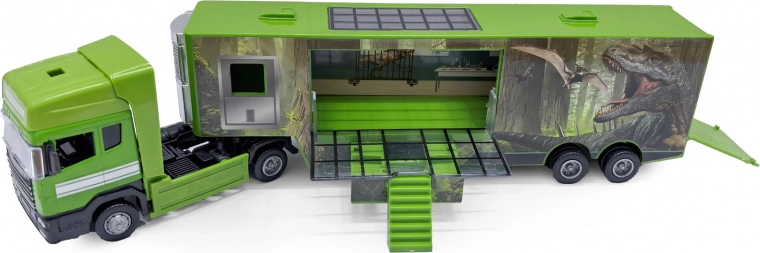 Dieser Lastwagen mit Dinosaurier ist das ideale Spielzeug für Kinder, die große Maschinen und actionreiche Szenarien lieben. Dank des Freilaufs lässt er sich leicht bedienen – ein leichter Schubs genügt, und er fährt los. Die robusten Materialien aus Metall und Kunststoff gewährleisten eine lange Lebensdauer auch bei intensivem Spielen.
