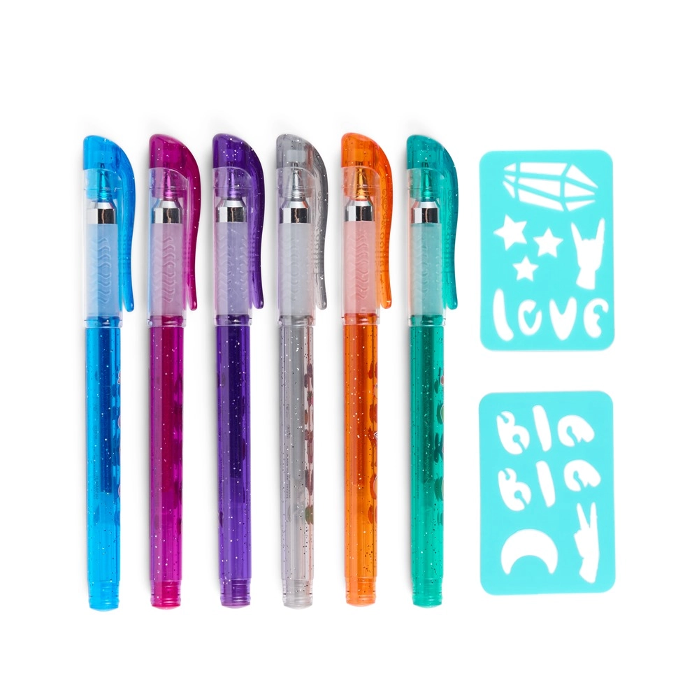 Entdecken Sie eine unterhaltsame Möglichkeit, Ihre Kreativität auszudrücken. Das Tattoo-Set mit duftenden Gelstiften bietet sechs kräftige Farbtöne – Rosa, Blau, Lila, Grün, Orange und Silber – die auf der Haut schön zur Geltung kommen. Dank der zwei beiliegenden Schablonen gestalten Sie sowohl einfache als auch komplexere Motive, oder entwerfen Sie je nach Laune Ihr eigenes Design.