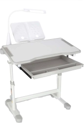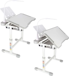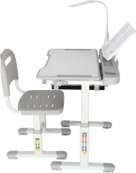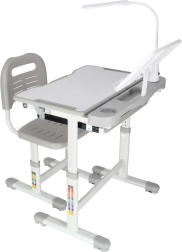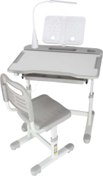 Praktischer Kinderschreibtisch mit Stuhl und USB-LED-Lampe in Grau schafft einen ergonomischen und aufgeräumten Platz zum Lernen und Kreativsein. Die Höhe von Tisch und Stuhl lässt sich stufenlos an das Wachstum des Kindes anpassen. Mit klappbarer Arbeitsplatte, großer Schublade mit Organizer, Taschenhaken, Becherhalter und Buchständer. Die LED-Lampe bietet 3 Lichtmodi und 3 Helligkeitsstufen für die richtige Beleuchtung bei Tag und Nacht.