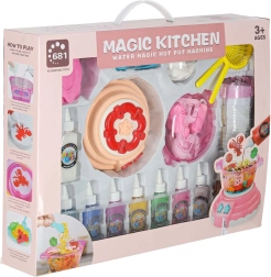 Die Zauberküche ist ein interaktives Kreativset, inspiriert vom asiatischen Hotpot. Formen, die mit Gel gefüllt sind, werden in einen Topf mit einer speziellen Wasserlösung gelegt und innerhalb weniger Sekunden entstehen originelle 3D-Figuren. Dank 12 Gel-Nuancen können Sie die Farben beliebig mischen und eigene Kombinationen kreieren.