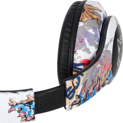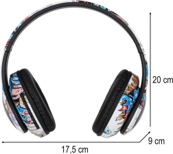 Praktische Tasten an der Ohrmuschel ermöglichen Lautstärkeregelung, Titelsprung, Annahme von Anrufen sowie Ein/Aus. Weiche Ohrpolster mit verstellbarem Kopfbügel sorgen für Komfort beim Arbeiten, Spielen und Reisen. Das beiliegende USB–Micro‑USB‑Kabel erleichtert das Aufladen des integrierten 150‑mAh‑Akkus.