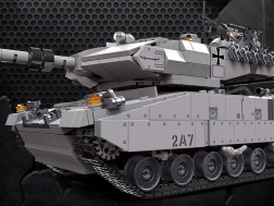 Dieser detailreiche Bausatz bildet die Silhouette und Merkmale des echten LEOPARD 2A7 originalgetreu nach – vom drehbaren Turm mit verstellbarem Rohr über Module reaktiver Panzerung bis hin zu realistischen Ketten, die eine leichte Bewegung des Modells auf verschiedenen Oberflächen ermöglichen. Die einheitliche graue Tarnung unterstreicht den authentischen militärischen Look.