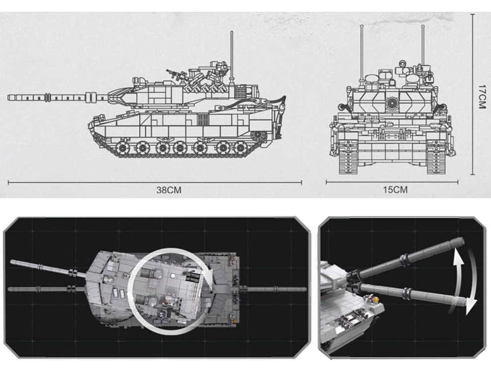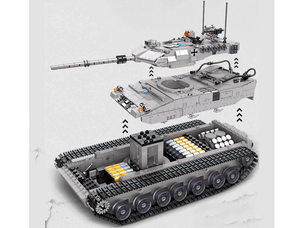 Bauen Sie den ikonischen deutschen Kampfpanzer LEOPARD 2A7 aus 1498 Teilen. Die realistische Replik bietet einen drehbaren Turm mit beweglichem Rohr, segmentierte Ketten für sanfte Bewegung sowie detailierte Panzerung und Ausrüstung. Ideal für Technikfans, Modellbau und lehrreiches Spielen.