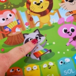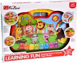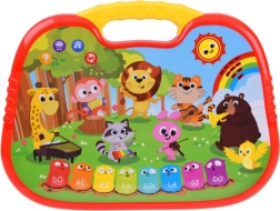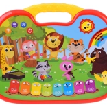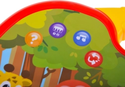 - Namen lernen: Beim Drücken eines Bildes spricht das Spielzeug den Namen des Tiers/ Instruments; nach Druck der roten Taste und erneutem Drücken des Bildes werden deren Geräusche abgespielt.