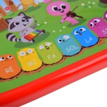 • Melodiewiedergabe – jeder Tastendruck spielt den nächsten Ton eines bekannten Liedes (z. B. Old MacDonald, Twinkle Little Star). Die Liedauswahl ändert die rote Taste mit Pfeilen.