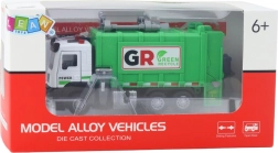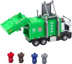 Das Modell verfügt über eine öffnende Heckklappe und einen Hebemechanismus für Container, sodass Abfall realistisch be- und entladen werden kann. Vier farbige Eimer motivieren Kinder zur Mülltrennung und vermitteln Umweltschutz. Die stabile Konstruktion aus Kunststoff mit Metallteilen hält auch intensivem Spiel stand.