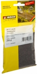 Dunkelgrauer NOCH-Schotter 250 g für Modellbahnanlagen H0 und TT. Naturbelassener, gebrochener Stein, grobe Körnung, realistisches Streckenbild. Geeignet ab 14 Jahren.