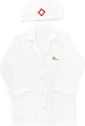 Der weiße Kittel und die Mütze mit medizinischem Symbol regen die kindliche Vorstellungskraft an und verleihen dem Spiel einen realistischen Touch.