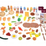 Topf, Pfanne, Kännchen, Teller, Besteck, Gewürze sowie vielfältiges Obst, Gemüse, Fleisch und Süßigkeiten – alles für stundenlanges Kochvergnügen.