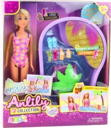 Die Puppe ANLILY am Strand bringt die Atmosphäre unbeschwerter Ferien direkt ins Kinderzimmer. Ein stylisches Strand-Outfit, farbenfrohes Zubehör und ein kompakter Pool mit Rutsche und Palme schaffen die ideale Kulisse für sommerliche Geschichten.
