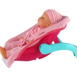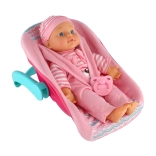 Der praktische Tragekorb mit Griff und Gurten ermöglicht es, die Puppe bequem zu tragen, zu setzen und sanft zu wiegen – ideal für das Spiel zu Hause und unterwegs.