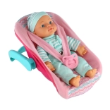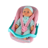 Zum Lieferumfang gehört ein praktischer Tragekorb/Autositz mit bequemem Griff und Sicherheitsgurten, mit dem sich die Puppe leicht transportieren, setzen oder sanft wiegen lässt. Ein Schnuller ist ebenfalls dabei – das ideale Zubehör zum Beruhigen und Einschlafen. Das Spiel mit der Puppe fördert Feinmotorik, Kommunikation und Empathie.