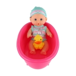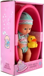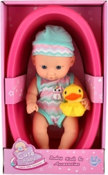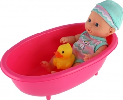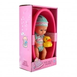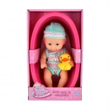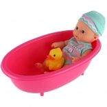 Die Puppe in der Badewanne mit gelbem Entchen schafft eine fertige Szene für Rollenspiele und tägliche Pflegerituale rund um das Baby.