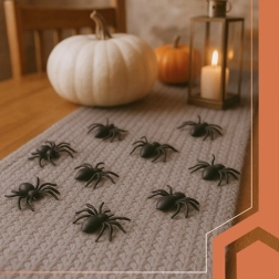 Das Set mit 10 Stück ermöglicht eine freie Anordnung – in Spinnweben, auf dem Tisch, auf Regalen, in Bühnenbildern oder in der Fotobooth. Dank der kompakten Maße von 3 × 3 cm können Sie sie leicht verteilen, ankleben oder genau nach Ihren Vorstellungen arrangieren.