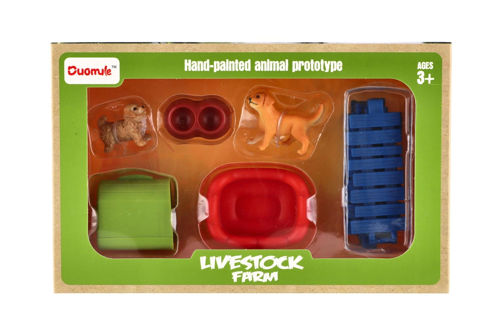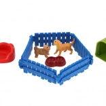 Dieses Spielset enthält zwei Hundefiguren mit realistischen Details, einen Zaun zur Gestaltung eines Auslaufs sowie praktische Zubehörteile wie einen Napf und ein Körbchen. Kinder können ihre eigene Welt erschaffen und die Pflege von Tieren üben.