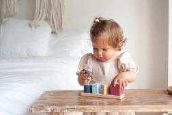 Das Holzpuzzle Cubika Pastell Formen-Sortierer V bietet spielerisches Lernen mit Spaß. Kinder sortieren und stecken 16 perforierte geometrische Formen auf die Stifte der rechteckigen Basis, trainieren die Augen-Hand-Koordination und lernen Farben und Formen zu erkennen.