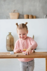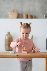 Das Spielzeug besteht aus Hartholz (Ahorn, Buche) aus nachhaltigen Quellen und ist mit geruchsfreien, wasserbasierten, unbedenklichen Farben lackiert. Es erfüllt strenge europäische Sicherheitsstandards und ist daher ideal für das tägliche Spiel geeignet.