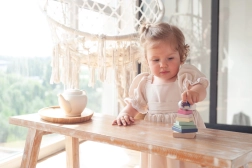 Die pastellfarbene Pyramide mit Huhn ist ein hochwertiges Holz-Steckspiel, das Kinder spielerisch das Stapeln der Teile in der richtigen Größen- und Farbfolge lehrt. Mit 8 präzise gearbeiteten Elementen fördern Kinder ihre Feinmotorik, Geduld sowie das Erfassen von Formen und Farben.
