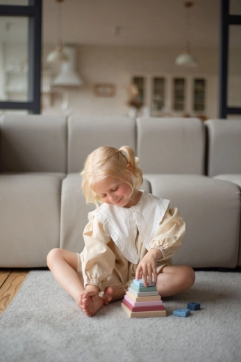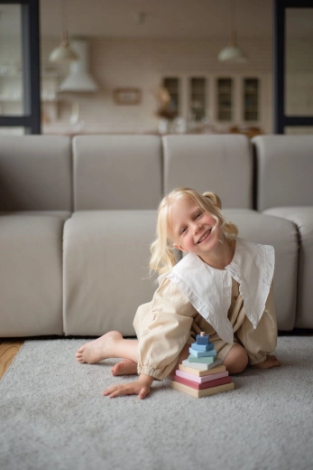 Entdecken Sie das hochwertige CUBIKA Holzspielzeug aus der Pastellkollektion: eine farbige Pyramide mit 9 Teilen, die Kinder zu einer altägyptischen Pyramide zusammensetzen. Das Stapeln trainiert die Feinmotorik, die Hand-Auge-Koordination und fördert zugleich die Vorstellungskraft.