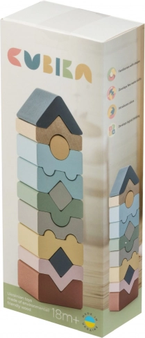 Der Pastellturm XI der Marke Cubika ist ein durchdachtes Holzpuzzle mit 12 Teilen in zarten Pastellfarben. Kinder stecken und stapeln die Teile so, dass sie korrekt aufeinanderpassen und ein stabiler Turm mit einer Höhe von 16 cm entsteht. Dank der präzisen Holzbearbeitung liegt das Spiel angenehm in der Hand und ist sicher für kleine Kinderhände.