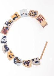 • Set-Inhalt: Holzelemente mit Verkehrsmotiven, Schnur mit Stift und Stopper, Vorlagenkarten