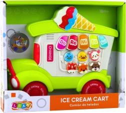 Das vom Eiswagen inspirierte Musikklavier überzeugt sofort durch sein Aussehen und freundliche Klänge. Kinder erlernen spielerisch die Grundlagen der Musik dank Tasten mit den Tönen Do Re Mi Fa Sol und unterhaltsamen Melodien. Das Spiel fördert Bewegungskoordination, Gedächtnis und Vorstellungskraft.