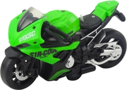 Kleine Fans hoher Geschwindigkeiten werden dieses sportliche Motorrad mit dynamischem Design und realistischen Details lieben. Der mechanische Schwungradantrieb ermöglicht es, das Motorrad einfach anzuschieben und zuzusehen, wie es nach vorne startet, während Lichter und Sounds dem Spiel den Flair einer echten Rennmaschine verleihen.