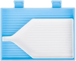 Gerillte Schalen mit Ausguss erleichtern das Aussieben der Diamanten und das präzise Zurückschütten in die Fächer ohne Verschütten.
