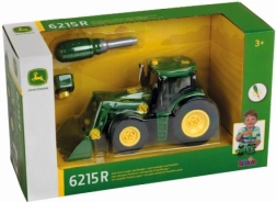 Entdecken Sie den Bauspaß und das Spielen mit dem realistischen Modell des Traktors John Deere 6215 R. Montieren Sie das Fahrgestell, ziehen Sie die Reifen auf, fügen Sie den Sitz, die Fahrerkabine und die Motorhaube hinzu – im Handumdrehen ist ein funktionsfähiges Modell mit Frontlader einsatzbereit.