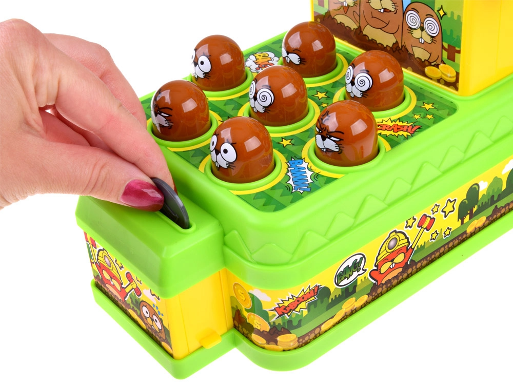 Entdecken Sie Familienspaß, der ab dem ersten Schlag fesselt. Auf dem Spielfeld leuchten zufällig 7 Maulwürfe auf – Ihre Aufgabe ist es, die gerade beleuchteten so schnell wie möglich mit dem weichen Gummihammer zu treffen. Jeder Treffer bringt Punkte, die Sie auf dem übersichtlichen Display sehen. Das Spiel fördert Feinmotorik, Koordination und Reaktionsgeschwindigkeit.