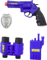 Enthalten sind 9 wichtige Zubehörteile: Helm, Handschellen mit Schlüsseln, Pistole, Fernglas, Funkgerät, Schlagstock, Abzeichen und Schutzschild. Alles in elegantem Dunkelblau mit silbernen und schwarzen Details. Das Set unterstützt Kreativität, Zusammenarbeit mit Gleichaltrigen und die Entwicklung kommunikativer Fähigkeiten.