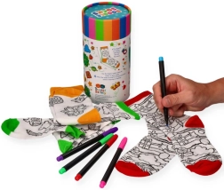 Verwandeln Sie gewöhnliche Socken in ein einzigartiges Modeaccessoire. Das Kreativset in der eleganten Tube ist ideal für das Basteln zu Hause, als Geschenk und für gemeinsame Familienaktivitäten. Der universelle Schnitt dehnt sich bequem und passt den meisten Kinderfüßen.