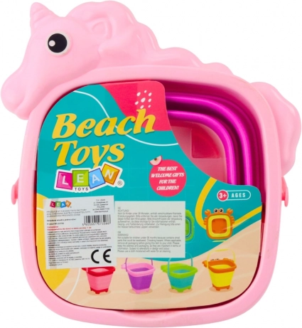 Machen Sie Kindern eine Freude mit einem Eimer, der leicht, robust und bereit für jedes Abenteuer am Wasser und im Sand ist. Die klappbare Konstruktion ermöglicht ein schnelles Falten in eine flache Form – ideal für Strandtasche oder Koffer. Das rosa Design mit Einhornmotiv fällt sofort ins Auge und unterstützt kreatives Spiel.