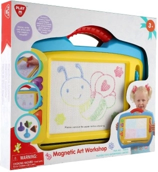 Die magnetische Tafel ist eine großartige Alternative zu Papier – Kinder können immer wieder zeichnen, ganz ohne Filzstifte und ohne Flecken. Dank des praktischen Schiebegummis/Schiebers lässt sich das Bild einfach löschen und die Fläche ist bereit für ein neues Kunstwerk. Robuste Ausführung aus Kunststoff mit Griff erleichtert das Tragen.