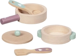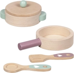 Dieses Holz-Kochset begeistert alle kleinen Köchinnen und Köche. Pfännchen und Topf mit Deckel sind aus strapazierfähigem Buchenholz gefertigt, das auch täglichen „Kochexperimenten“ standhält. Dank der soliden Verarbeitung und glatten Kanten ist das Spiel sicher und angenehm in der Haptik.