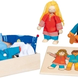 Die Puppen sind 10 cm hoch und ideal für die meisten Puppenhäuser, besonders jene der Marke Goki. Das Set enthält 8 Outfit-Sets, die die Entwicklung der Feinmotorik, Kreativität und sozialen Spielfähigkeiten fördern.