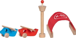 • Inklusive Zubehör: 2 Holzflugzeuge, Kontrollturm und Hangar