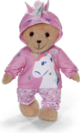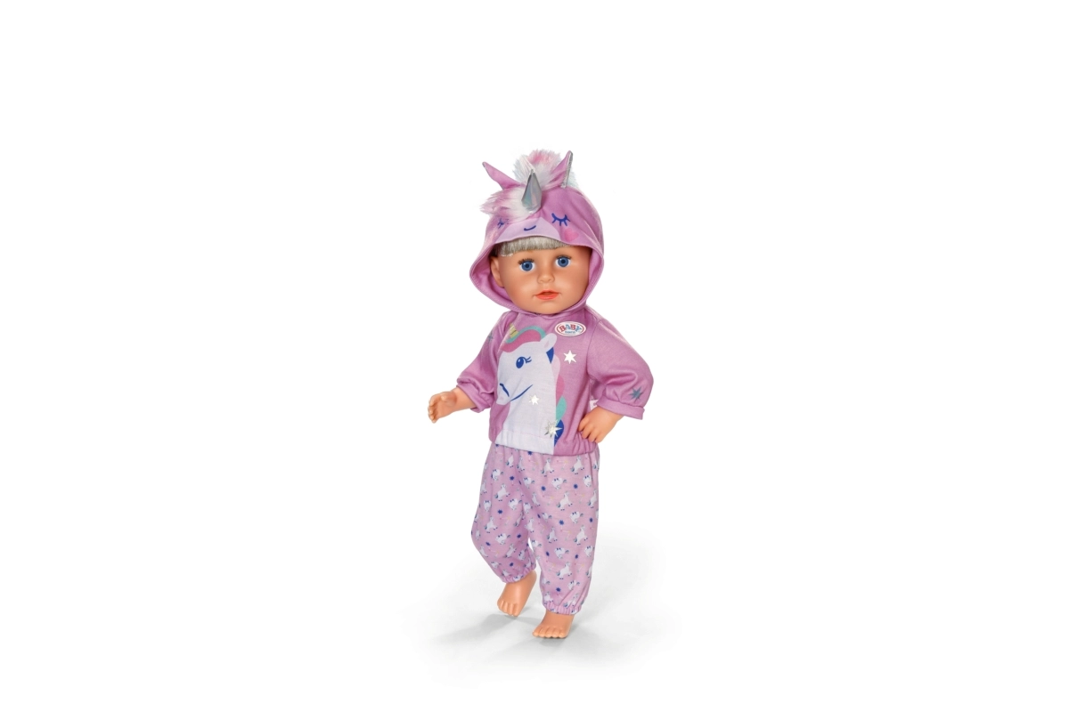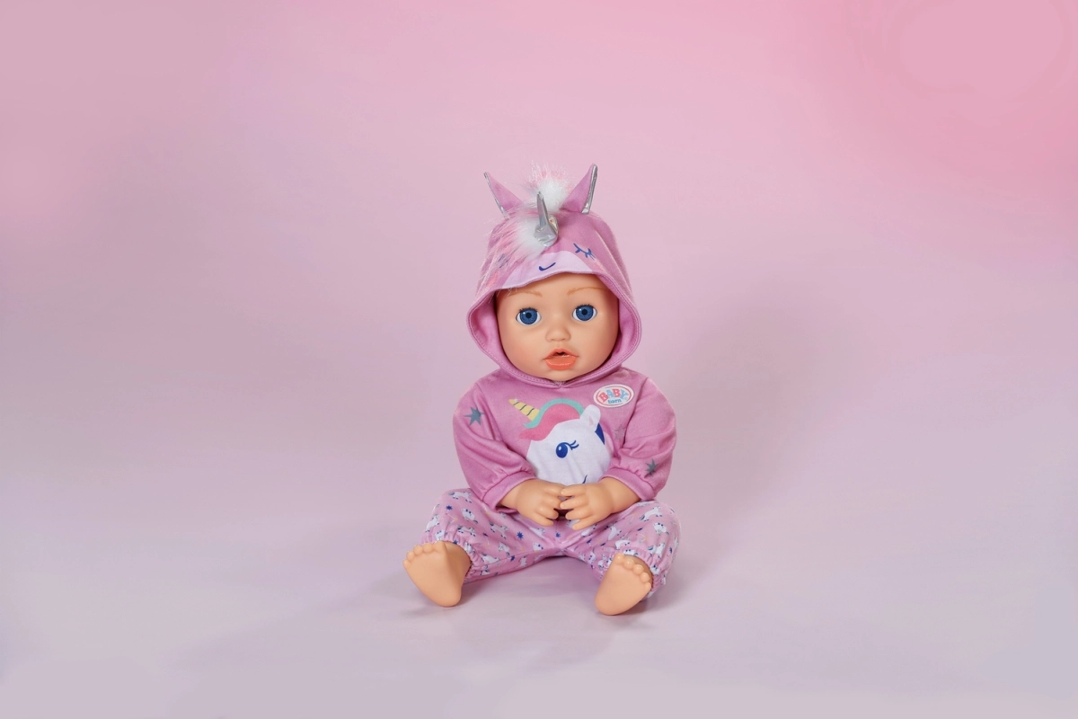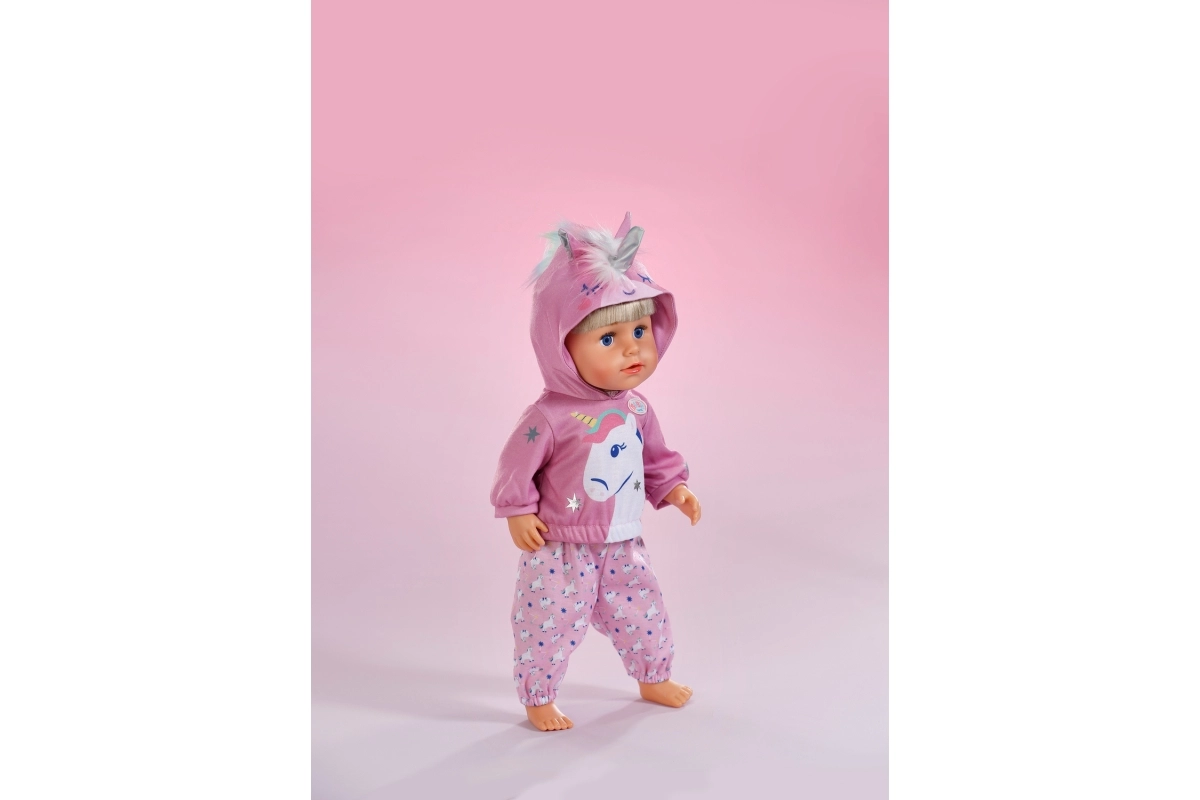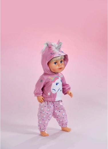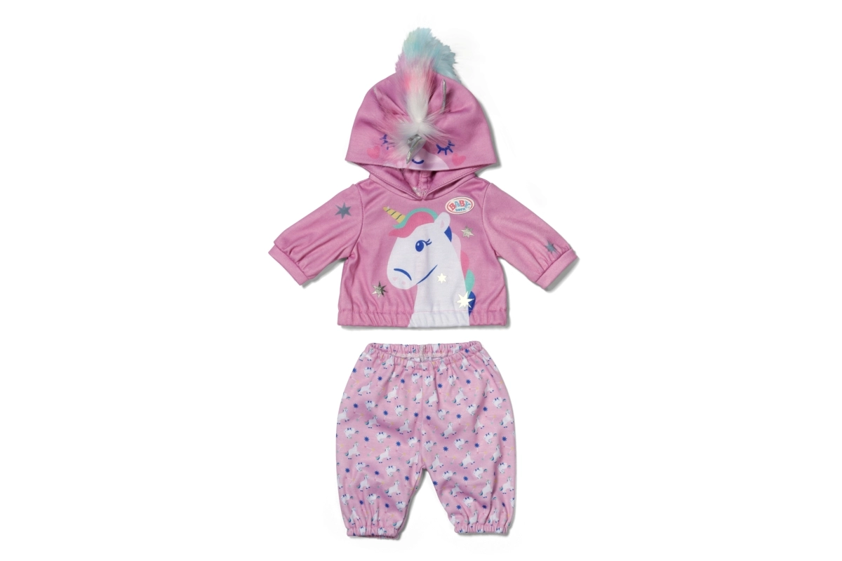 Das stylische Einhorn-Outfit macht aus jeder Puppe einen märchenhaften Freund. Das weiche Kapuzen-Sweatshirt mit Horn und Ohren sowie die passenden Hosen mit Einhornmuster fördern kreatives Spielen, das Erzählen von Geschichten und die Feinmotorik durch einfaches Umziehen.