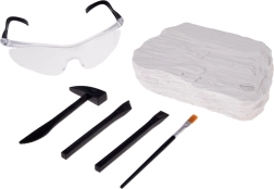 Das Set enthält 2 Meißel, einen Hammer, einen Pinsel und eine Schutzbrille. Kinder können sicher graben, reinigen und den verborgenen Schatz freilegen – wie echte Forscher.