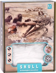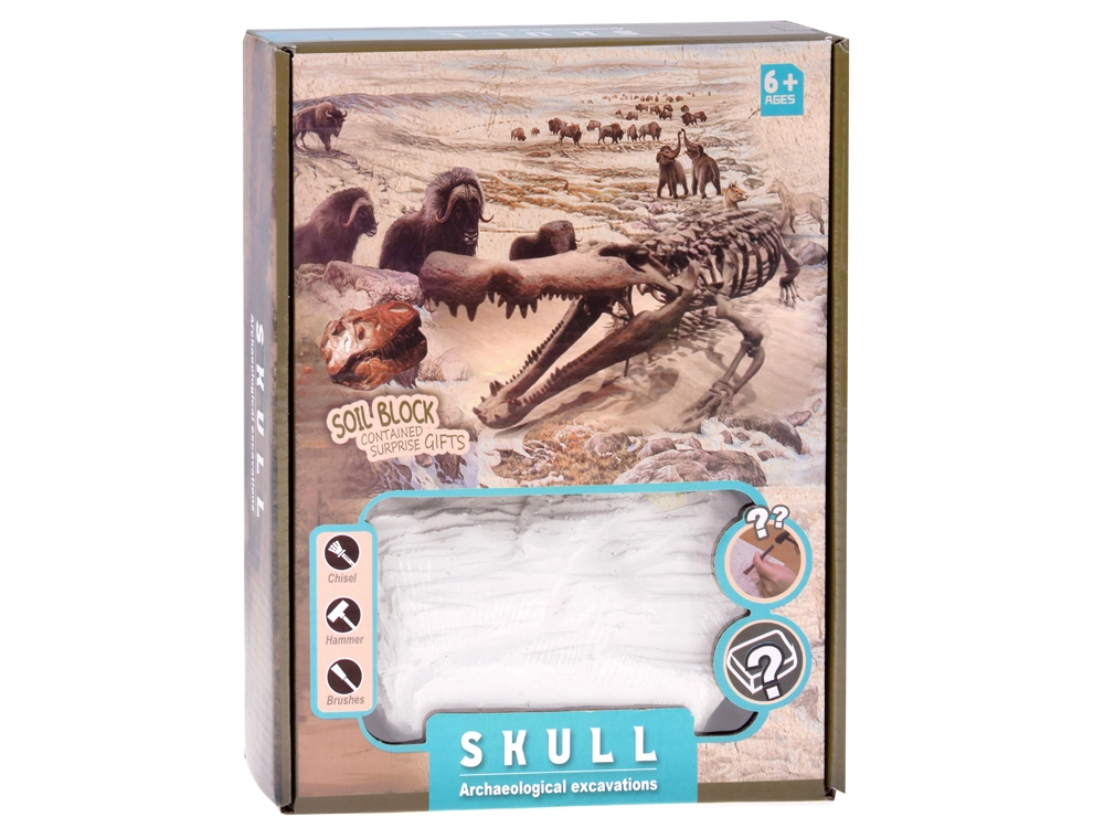 Entdecke die Geheimnisse der Urzeit Schritt für Schritt. Nimm die beiliegenden Werkzeuge in die Hand, lege den Gips vorsichtig frei und säubere den Fund mit dem Pinsel – genau wie echte Wissenschaftler im Feld. Jeder Block enthält eine Überraschung in Form eines von mehreren Schädeln, zum Beispiel Mammut, Säbelzahntiger, Krokodil, Adler, Nashorn und weitere.