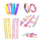 Dieses DIY-Armband-Set ermöglicht Kindern und Erwachsenen, einzigartige Accessoires ganz nach eigener Fantasie zu entwerfen und zusammenzustellen. Kombinieren Sie Buchstaben, gestalten Sie Namen, Sprüche und Motive und runden Sie alles mit farbigen Aufklebern ab. Dank der verstellbaren Bänder passen die Armbänder bequem an unterschiedliche Handgelenke.