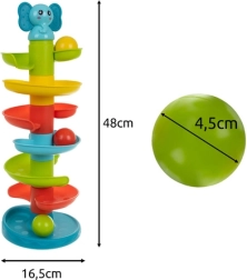 Lassen Sie Kinder die Freude an Bewegung und Klang mit einem farbenfrohen Kugelbahn-Turm und einer spiralförmigen Rutsche entdecken. Werfen Sie die Kugel oben hinein und beobachten Sie, wie sie mit fröhlichem Rasseln nach unten rollt – ein einfaches, aber äußerst unterhaltsames interaktives Spiel, das lange begeistert.