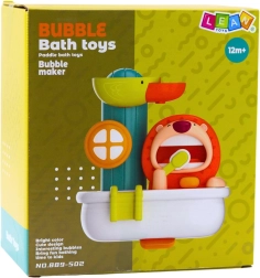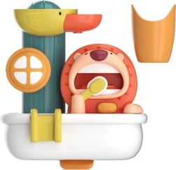 Dieses clevere Badespielzeug fördert eine positive Einstellung der Kinder zur Hygiene und entwickelt Feinmotorik sowie Hand-Auge-Koordination. Einfach Seife in den Behälter füllen und den manuellen Knopf drücken – die Bürste des Löwen erzeugt jede Menge Schaum, der jedes Baby und Kleinkind zum Lachen bringt. Durch Eingießen von Wasser in den Kopf des Entchens beginnen sich die Karussells zu drehen und die Wasserrutsche setzt sich in Bewegung.