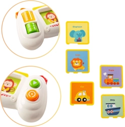 Im Lieferumfang sind farbige Karten enthalten, die in die Konsole eingesetzt werden können. Kinder lernen damit, Tiere, Verkehrsmittel und Alltagsgegenstände zu unterscheiden und trainieren dabei Gedächtnis und Aufmerksamkeit. Die kompakten Abmessungen machen sie zum idealen Begleiter zu Hause und unterwegs.
