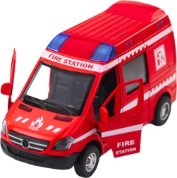 Entdecken Sie das detailreich gestaltete Feuerwehrmodell im Maßstab 1:32, das ein echtes Einsatzfahrzeug originalgetreu nachbildet. Die robuste Konstruktion aus Metall und hochwertigem Kunststoff sorgt für Langlebigkeit, während die rote Ausführung mit „FIRE STATION“-Aufdrucken die Authentizität unterstreicht. Den Pull-Back-Antrieb einfach nach hinten ziehen, und das Fahrzeug fährt selbstständig nach vorn – perfekt für actionreiche Spielszenen.