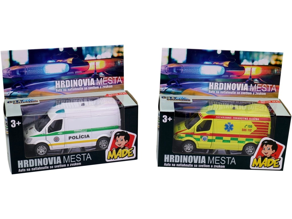 Verleihen Sie dem Spiel realistische Missionen mit detailgetreuen Modellen von Rettungsfahrzeugen im Design, das von slowakischen Straßen bekannt ist. Zur Wahl stehen 2 VariantenAmbulanz oder Polizei. Der Pull-Back-Antrieb sorgt für flotte Fahrten, während leuchtende Blaulichter und Sound die Einsatzatmosphäre verstärken.
