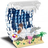 Das Modell kombiniert Details wie eine gewaltige Wasserwelle, einen Surfer auf dem Board, einen verspielten Delfin und einen Sandstrand mit Palme. Zwei Minifiguren verleihen der Szene Geschichte und Action – ideal zum Spielen oder als Dekoration.